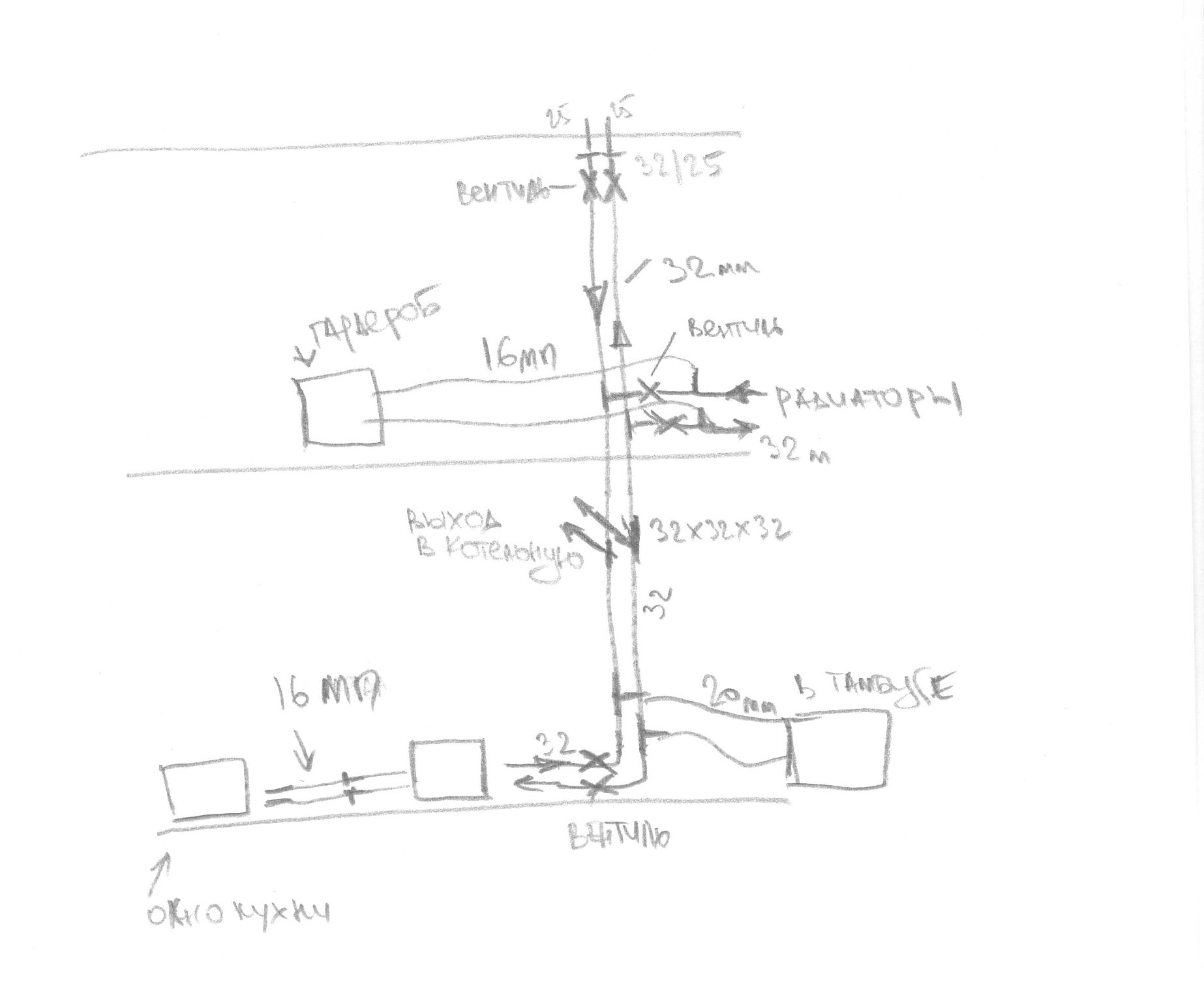 Добрый день, Владимир. Очень давно смотрю ваши работы. Меня зовут Артём. Имею 3 этажный дом. 150 м2 Горемонтажники 8 лет назад сделали родителям однотрубку, естественно которая нормально не работает. Сейчас переехал в этот дом жить я с семьей. И работа данной схемы не устраивает совсем. Имеется двухконтурный котел Шуфуто 24. Хотел переделать отопление с наименьшими затратами, так сказать усовершенствовать Магистраль вся 32 ппр. Разделено на 3 контура. Кадый контур идет отдельно. Возможно ли сделать двухтрубку тупиковую? Провести дополнительную трубу 32 ( имеется в достатке) и переделать котельную, как делаете вы с первичным кольцом.Сделать общий стояк на все 3 этажа как в многоквартирном доме. Запитать одним насосом. Только не знаю какой насос подобрать. Теплых полов нет. Имеются частотники 32-4. Очень надеюсь на ваше экспертное мнение. Спасибо